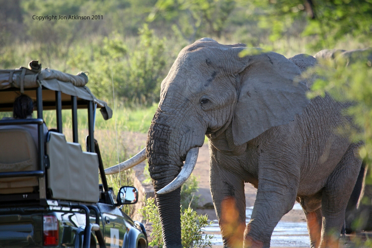 ELEPHANT 2 - Elephants, Kruger N.P., South Africa: African elephants are bigger than Asian Elephants. Males stand 3.24.0 m (1013 ft) tall at the shoulder and weigh 4,7006,048 kg (10,00013,330 lb), while females stand 2.22.6 m (7.28.5 ft) tall and weigh 2,1603,232 kg (4,8007,130 lb). |