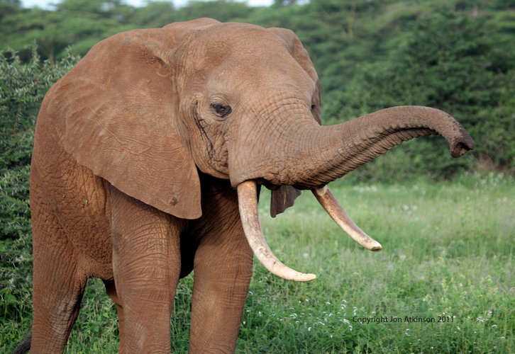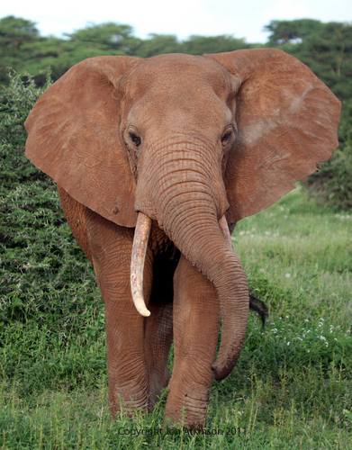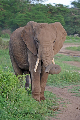 ELEPHANT 6 - Elephant, Amboseli N.P., Kenya: The tusks weigh from 2345 kg (5199 lb) and can be from 1.52.4 m (58 ft) long. Unlike Asian elephants, both male and female African elephants have tusks.