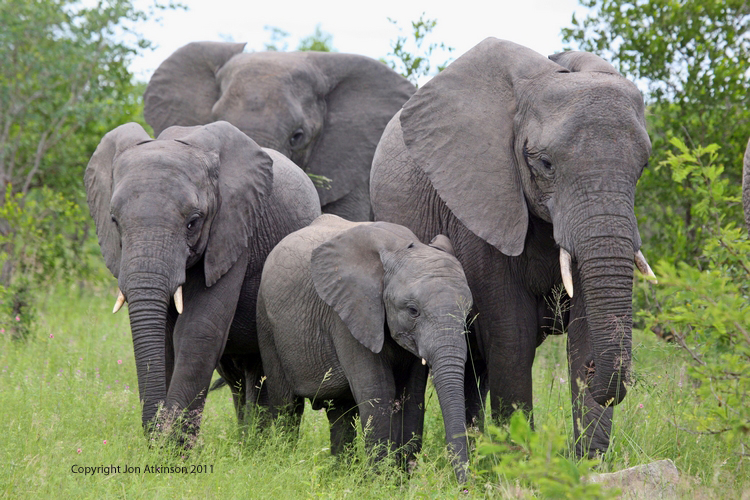 ELEPHANT 10 - Elephants, Kruger N.P., South Africa.: Female African elephants are able to start reproducing at around 10 to 12 years of age, and are in estrus for about 2 to 7 days. |