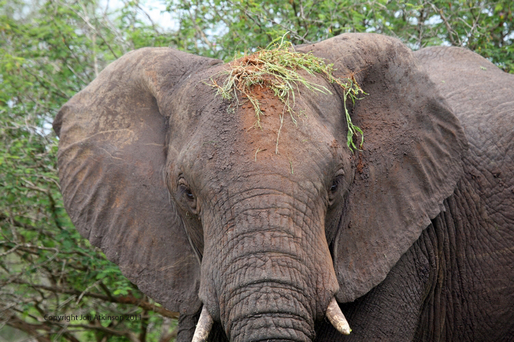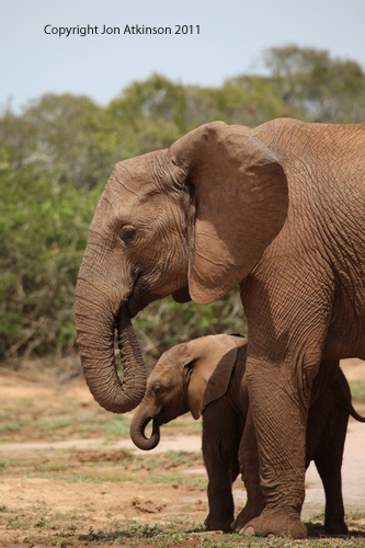 ELEPHANT 15 - Elephant, Kruger N.P., South Africa: They are amongst the world's most intelligent species. With a mass of just over 5 kg (11 lb), elephant brains are larger than those of any other land animal, and although the largest whales have body masses twenty-fold those of a typical elephant, whale brains are barely twice the mass of an elephant's brain. |