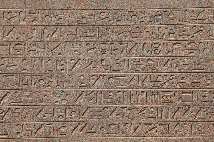 Karnak 13 - CHieroglyphics on the Obelisk, Karnak Temple Complex: Close-up of the Hieroglyphics on the Obelisk. |