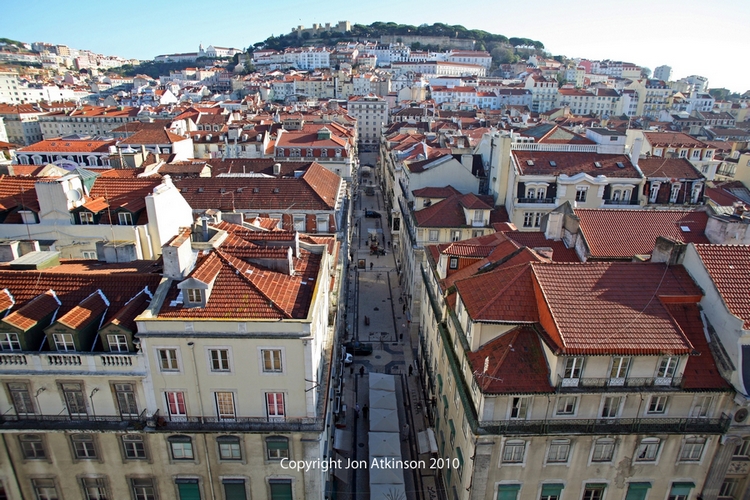 Lisbon_Sights10 - View of Lisbon from Santa Justa Elevator, Portugal: Scenic view towards Castle of São Jorge and Lisbon taken from the top of the Santa Justa Elevator. |