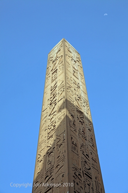Luxor 4 - Located at the entrance to the temple is a 25-metre tall pink granite obelisk. It was one of a matching pair until 1835, when the other one was taken to Paris where it now stands in the centre of the Place de la Concorde.