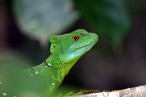 South American Wildlife 1 - 'Jesus Christ' Lizzard, Tortuguero N.P., Costa Rica: The common basilisk (Basiliscus basiliscus) is a lizard found in Central and South American rainforests near rivers and streams. The basilisk is part of the corytophanid family. It is also known as the Jesus lizard, Jesus Christ lizard, or lagarto de Jesus Cristo for its ability to run on the surface of water.. |