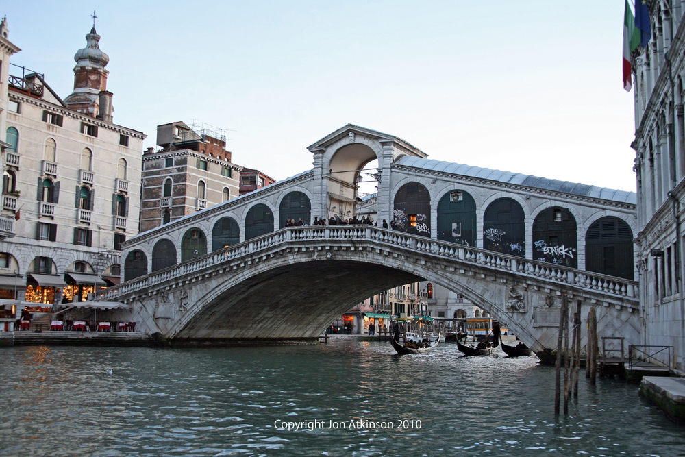 Venice_13: Ponte di Rialto, Venice, Italy The Ponte di Rialto is constructed of marble and was constructed between 1588 and 1591 to replace a wooden bridge at the same location which was built in 1255.