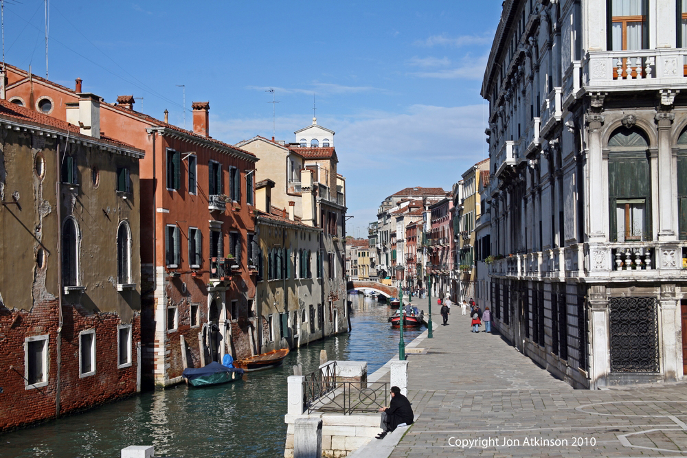 Venice_6:Venice Street Scene, Cannaregio Sestiere Cannaregio was settled well before AD 1000, when the first dwellings were built on the islands of San Giovanni Crisostomo and Santi Apostoli, close to the Rialto. The areas adjacent to the Grand Canal were built up next. The urban sprawl proceeded northwards, engulfing the convents and monasteries on what were, until then, remote islands. |