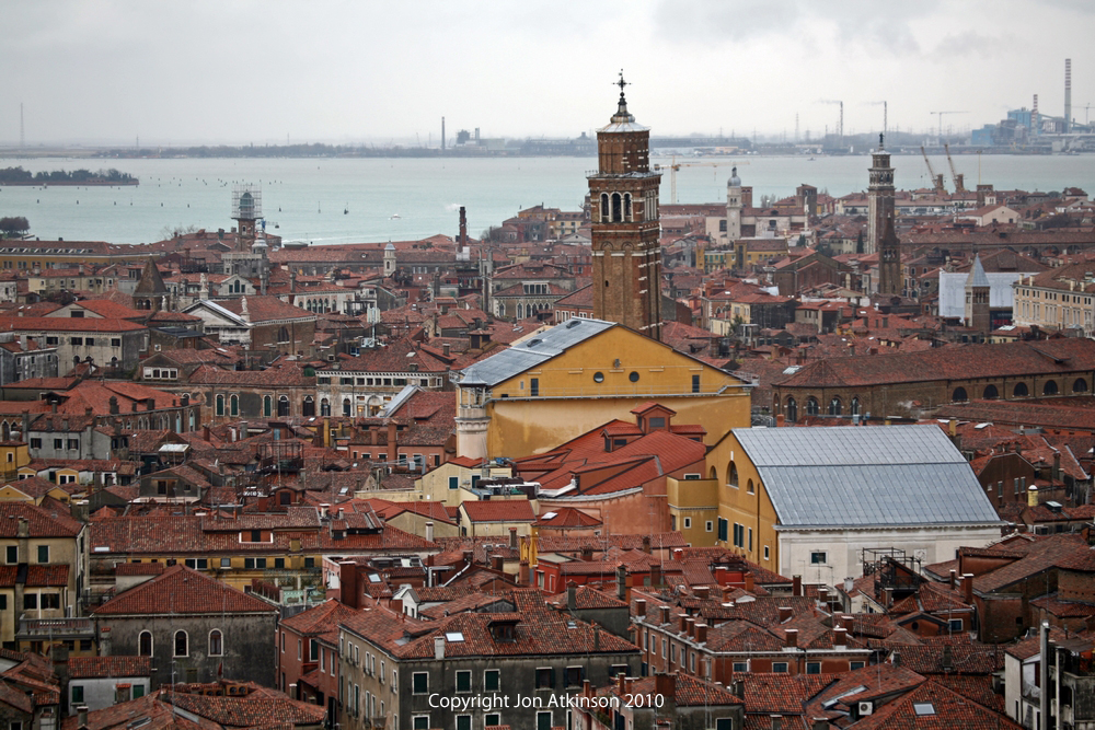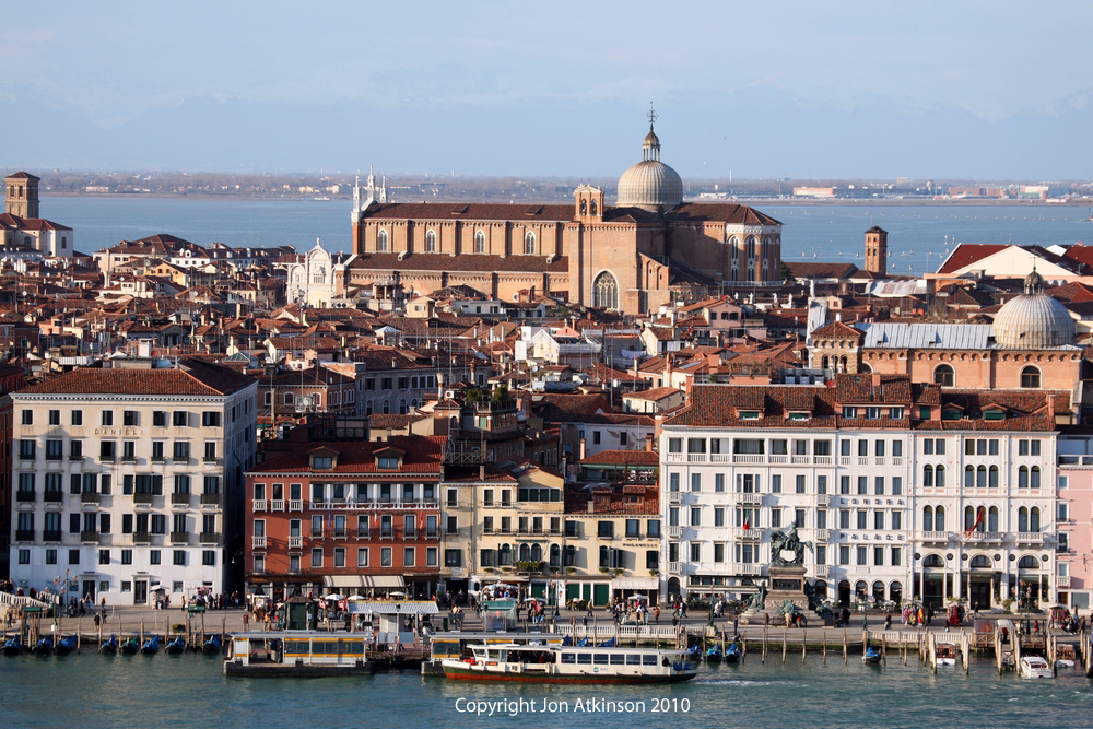 Venice_11 View from the Bell Tower of the Church Of San Giogio Maggiore View of the Ventitian landscape taken from the Bell Tower of the Church Of San Giogio Maggiore, first built in 1467, subsequently fell in 1774 and the reconstruction was completed in 1791. |